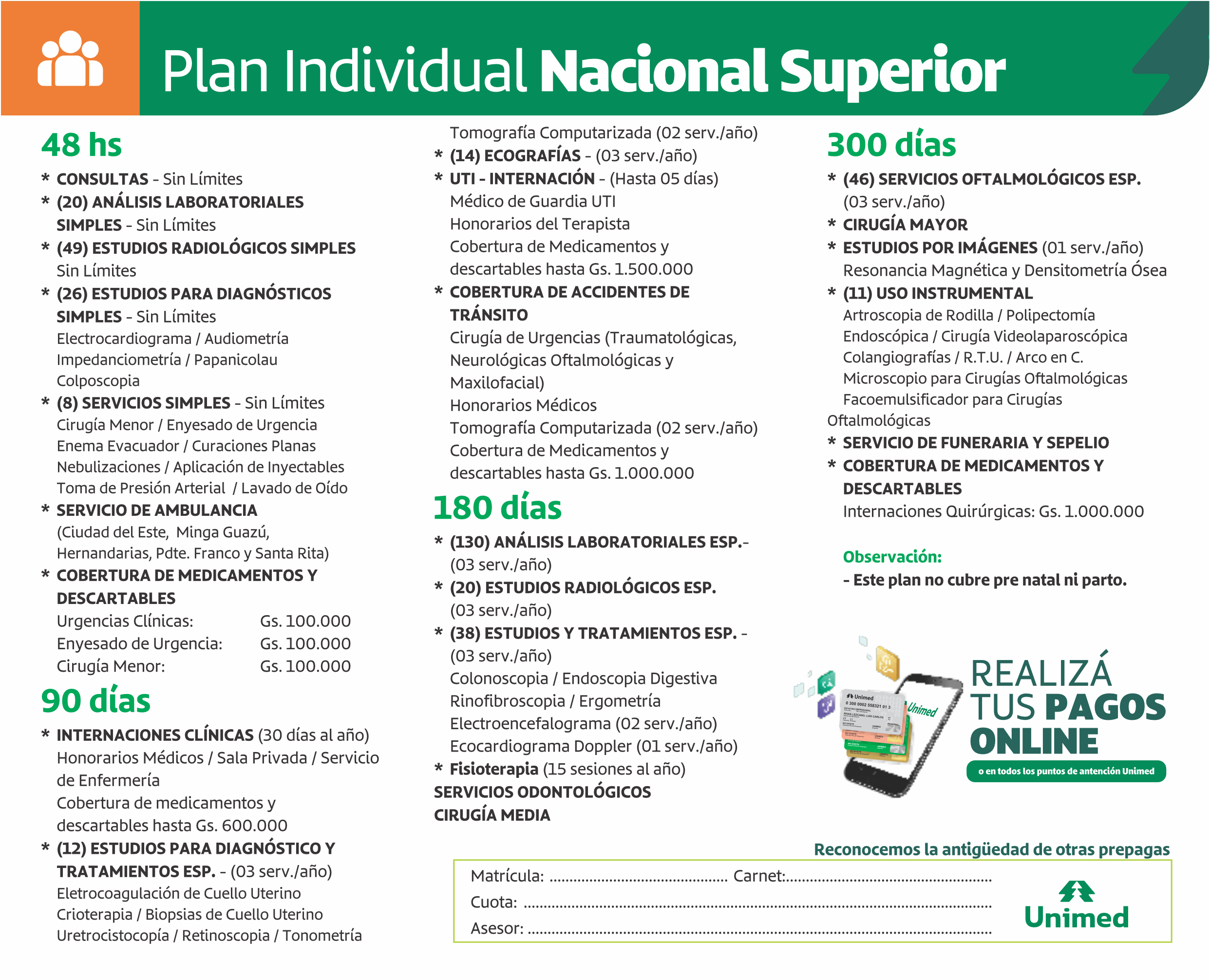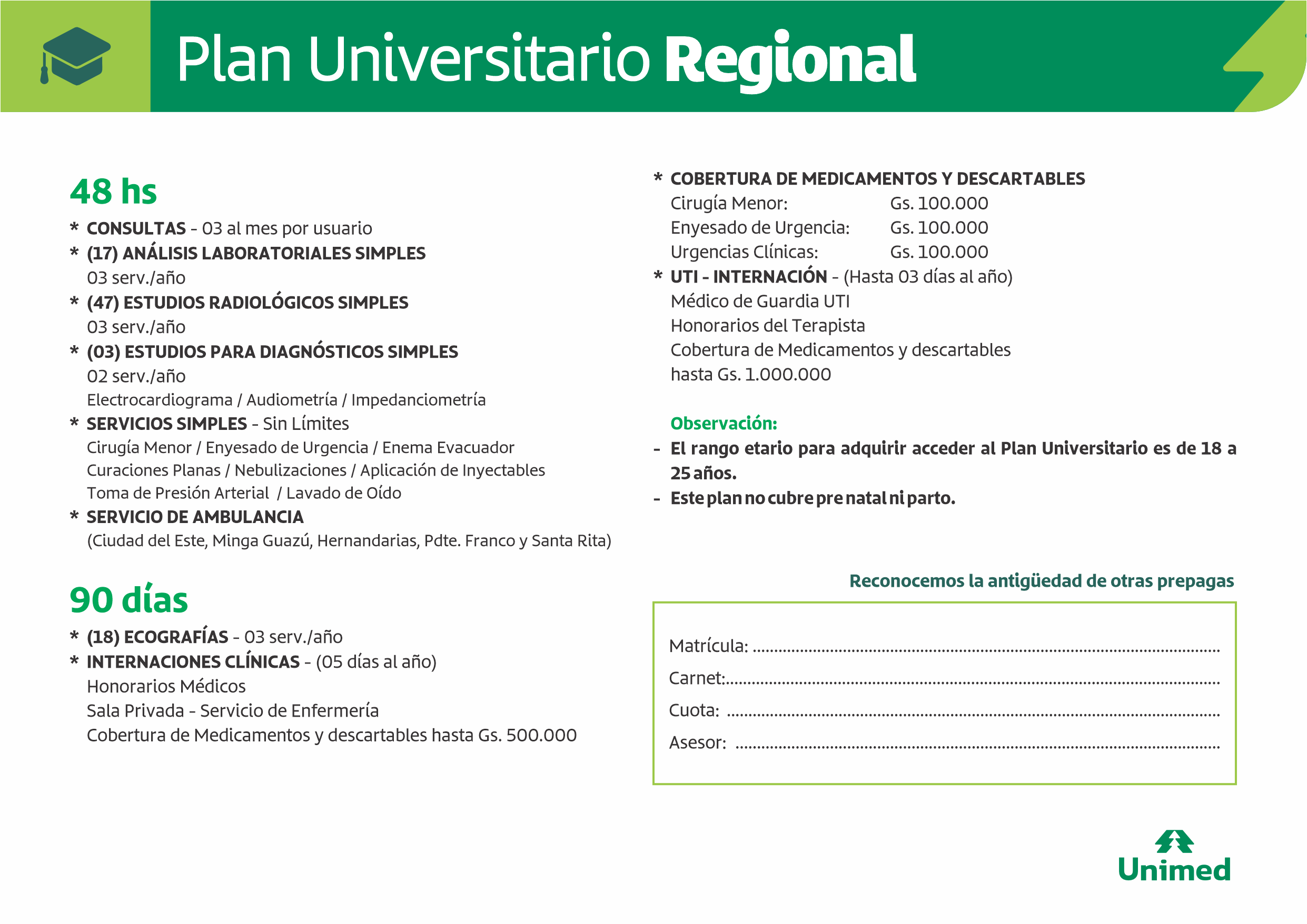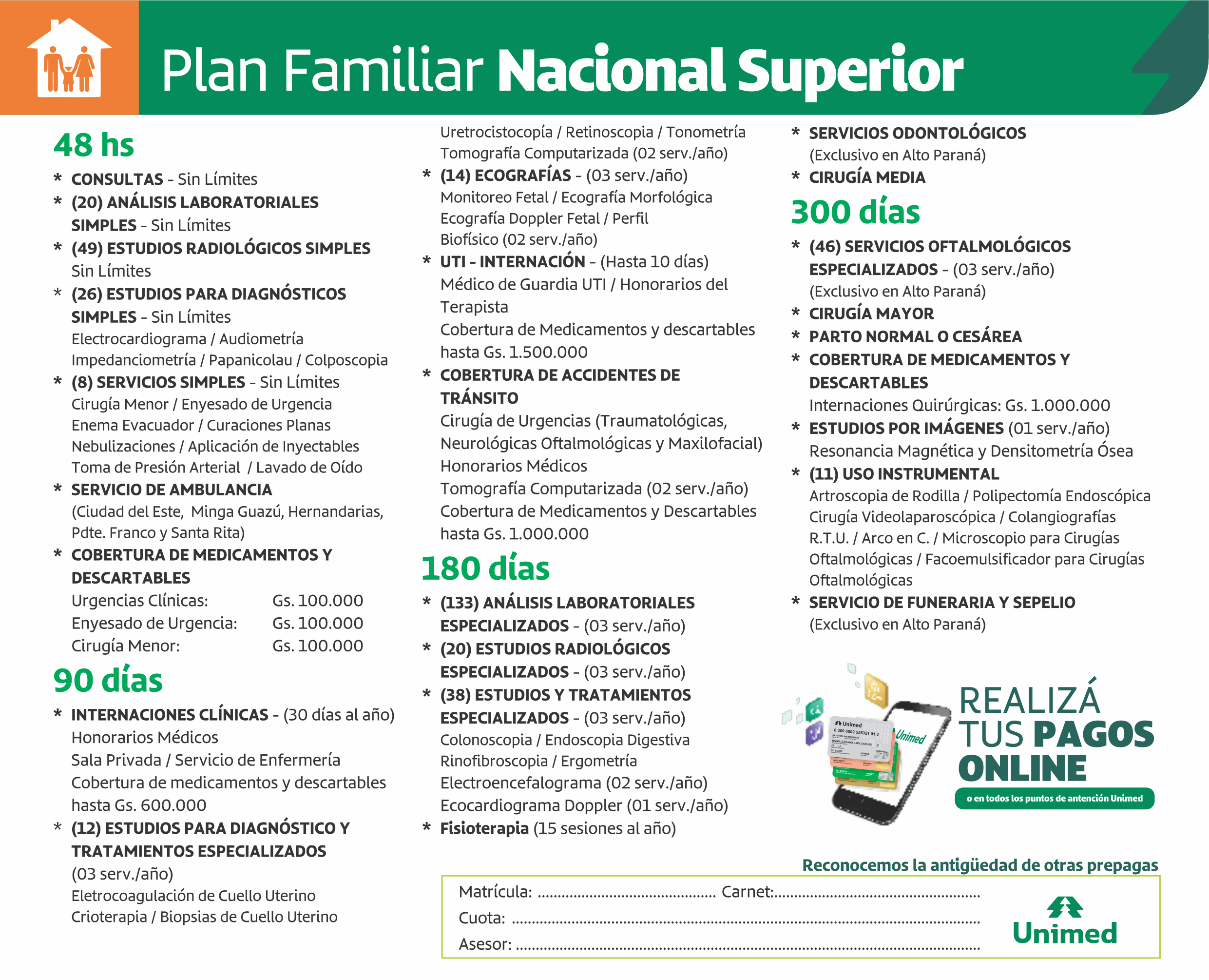 En Unimed contamos con una variedad de planes de salud que se adaptan a personas, familias y empresas, con acceso a una amplia red de sanatorios, clínicas y profesionales en todo el país. Nuestro objetivo es que cada beneficiario reciba atención oportuna, segura y de calidad, sin sorpresas al momento de utilizar su cobertura.